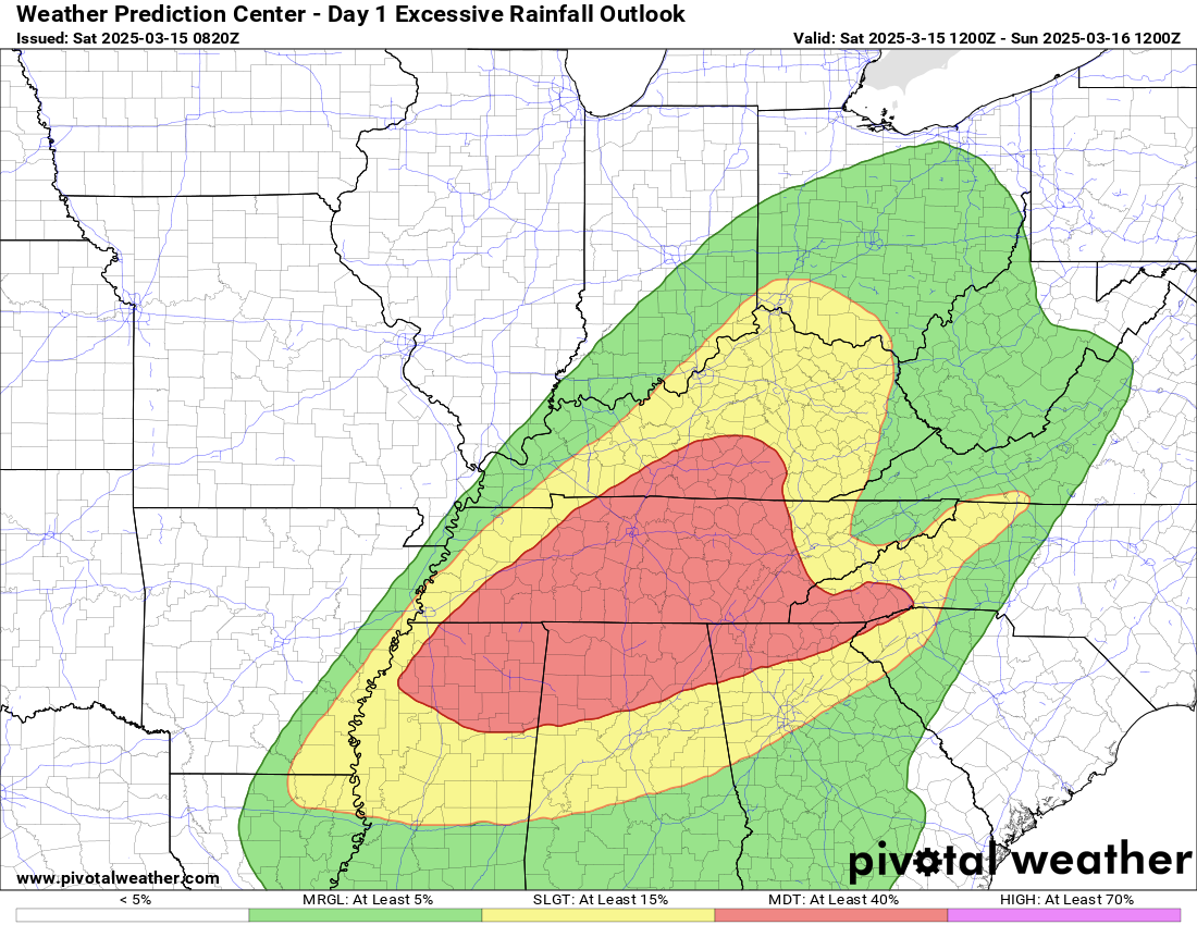.The Tennessee Valley region is particularly prone to flash flooding due to the terrain and we are still early enough in the year that a lot of the rain will runoff, exacerbating flash flood potential.