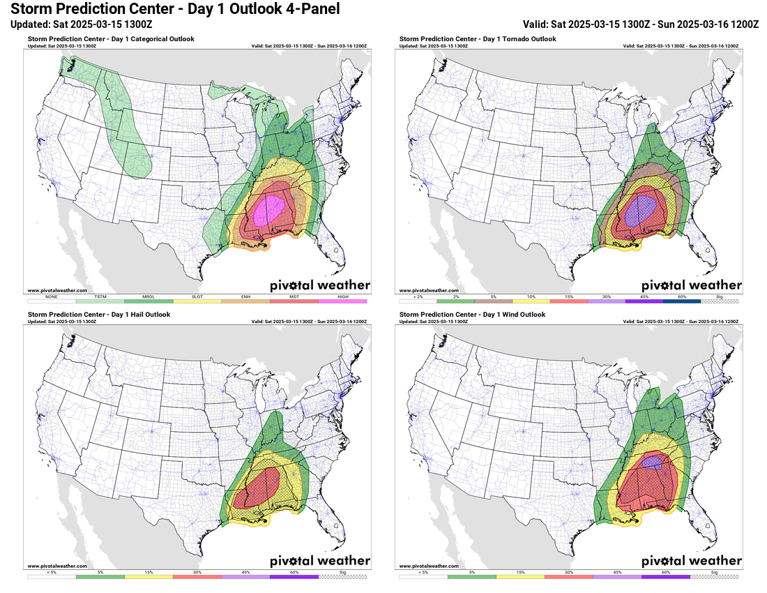 Bottom line up front: today is a potential tornado outbreak day in Mississippi, Alabama, and middle Tennessee, and people in those areas need to be vigilant and ready to take protective action quickly.