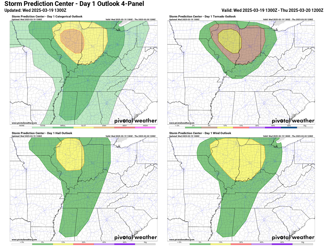 Again, after today, we’ll have quieter weather for the next couple of days; this system will move east through the eastern seaboard with showers/storms on Thursday but as of now, the severe weather risk looks minimal.