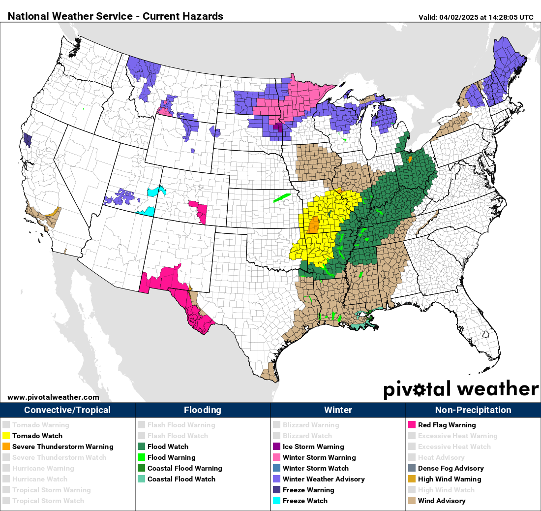 And last but not least, need to mention that there continues to be critical fire danger concern in portions of New Mexico and west Texas, and winter weather impacts along the northern tier of states where winter storm warnings and advisories are in effect.