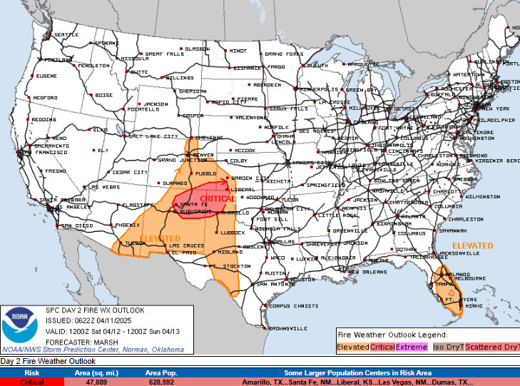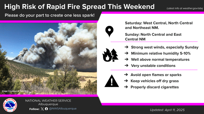 The NWS office in Albuquerque is particularly concerned about the potential for rapid wildfire growth in New Mexico this weekend, especially on Sunday. Much of the Southwestern US is in severe to extreme drought and is particularly vulnerable to wildfire activity as we get into the this period of the year between the winter wet season and the summer monsoon when wildfires are of greater concern.