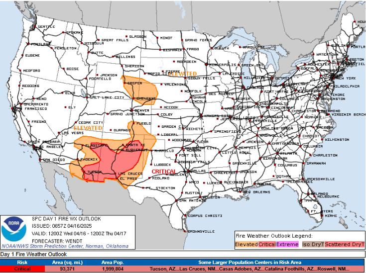 Of greater concern on the southwest, dry side of this weather system is the fire weather situation, which has trended more ominously with recent forecasts. As the storm system over the northern Rockies intensifies and starts to move into the central United States, west to southwest winds will increase to the south of it across the southern Rockies and Plains and bring increasingly drier air into the region. This will increase fire danger starting today across New Mexico and eastern Arizona, regions which are dealing with severe drought in many areas.