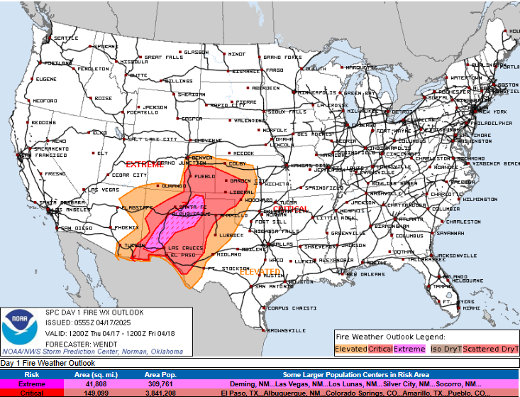 Eastern New Mexico and parts of southwest Texas will have critical fire danger again on Friday.