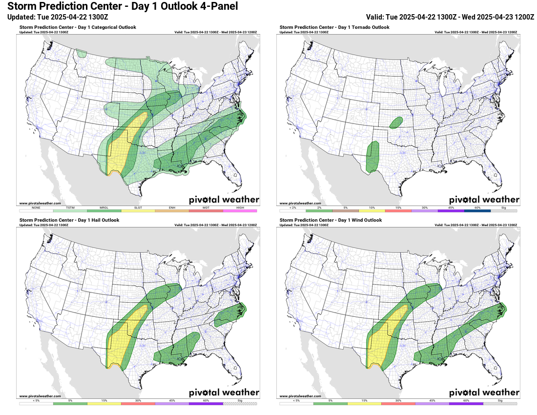 A similar pattern will be in place on Wednesday, and at least a marginal risk for severe storms will expand to include eastern Colorado and parts of Nebraska.