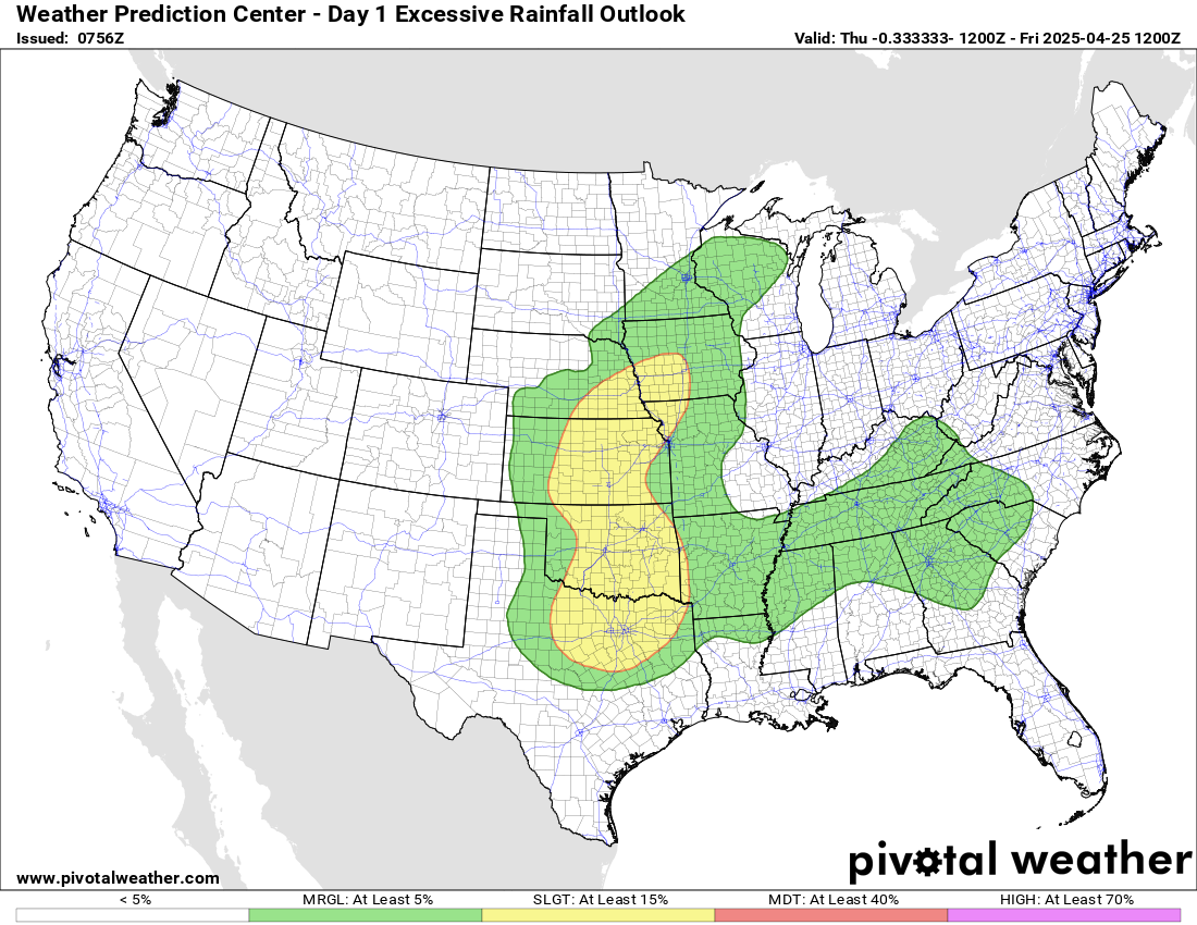The thunderstorms across the Plains will be relatively slow moving, and as a result some storms could produce several inches of rainfall in a localized area, potentially producing some flash flooding. The Weather Prediction Center has outlooked a large slight (level 2 of 4) risk for flash flooding across this region for today and tonight.