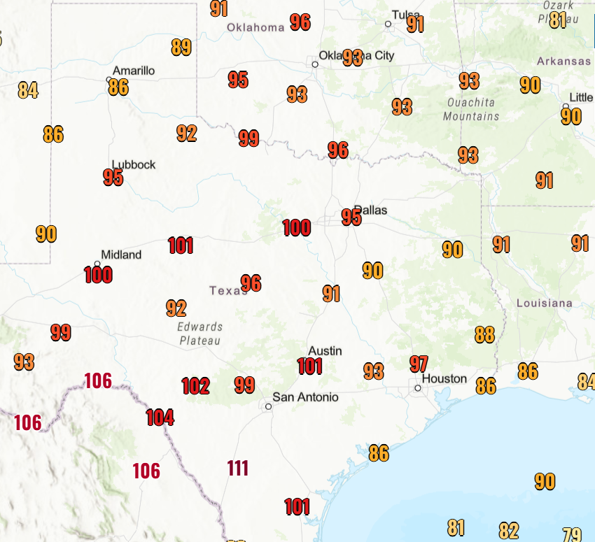 So now let’s turn to the weather. The heat was on again in the middle of the country, with a number of record highs set in Texas and the Southern Plains. There was one more day of record heat in the north central states as well as International Falls hit 91F and set another record high – cooler weather will now be setting up over this region.