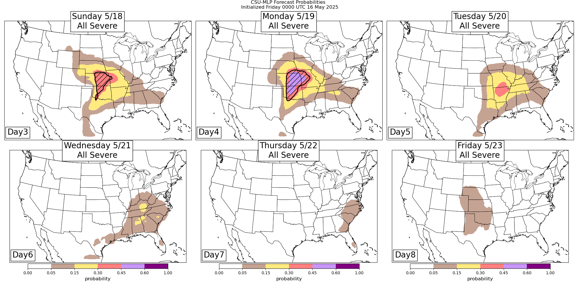 An active severe weather pattern is anticipated early next week as a strong storm system develops over the westernowly moves east into the Midwest. Each day during the period Sunday through Tuesday could see significant severe weather episodes with strong tornadoes and very large hail possible. The weather pattern should calm down a bit beyond the middle of next week.