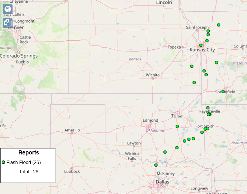 Several swaths of heavy rain greater than 2” also fell across the region, with the heaviest rain over eastern Oklahoma where there was an area of 5-6” of rain southwest of Fort Smith, AR where some roads were closed by flash flooding. Other reports of flash flooding were scattered across the region.