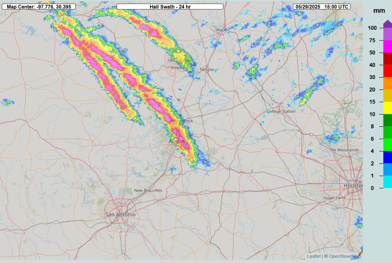 In my opinion, this event is a prime example of how the expanding bullseye effect as discussed by researchers Walker Ashley and Stephen Strader – described here – is dramatically increasing the impact of severe weather regardless of how climate change is impacting the frequency and magnitude of such events. Along with impacting Travis County where Austin is located, this supercell moved through Burnet and Williamson counties just north of Austin. These counties are seeing tremendous growth, with the Texas Demographic Center estimating population increases of 17.1% in Williamson County and 12.6% in Burnet County just in the 2020-4 period. Increasing urban sprawl is placing much more in the way of societal “targets” in the paths of these storms, resulting in increased economic and human tolls.