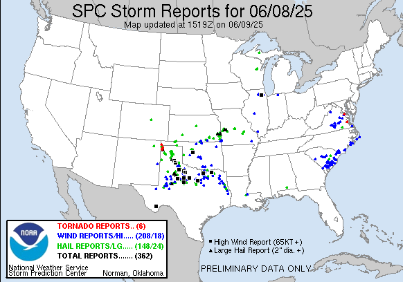 Happy Monday 🙂 Meteorologically, things worked out about as expected over the last 24 hours with numerous severe storms across the Southern Plains and into parts of the Midwest, with nearly 300 reports of severe weather in this region. This included nearly 20 reports of measured significant wind gusts (75 mph or greater) and two dozen reports of very large hail (greater than 2”). A measured wind gust of 100 mph was recorded at the West Texas Mesonet Site in Knox County, TX, and grapefruit sized hail was reported in Armstrong County, TX. In the eastern US, severe storms produced a number of reports of wind damage and large hail from eastern Virginia into South Carolina, and as expected a few tornadoes also occurred in eastern Virginia.