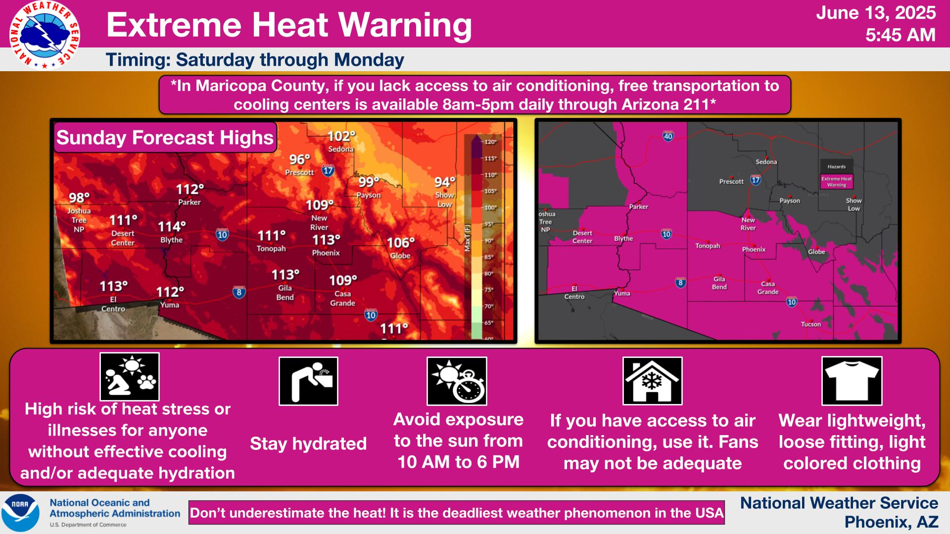 Extreme heat warnings are in effect for much of this region, including the Phoenix, Tucson and Yuma areas.