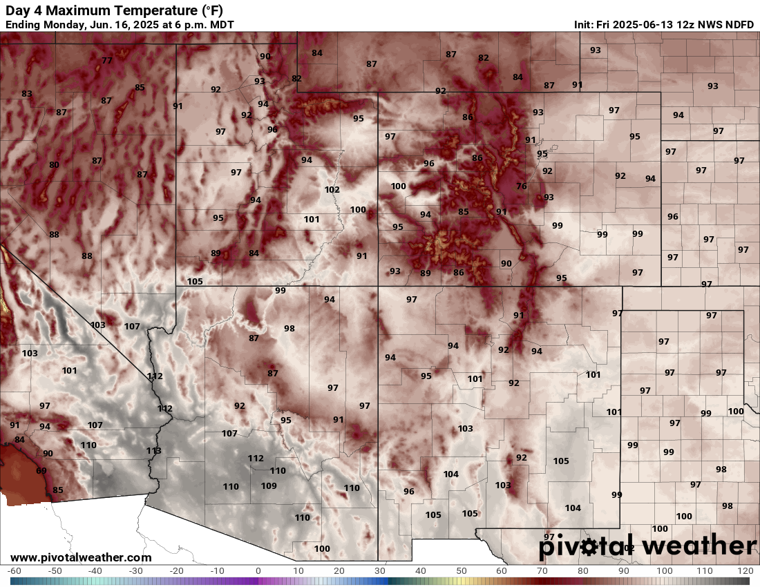Heat will become an increasing concern under the Southwest upper level high, and by Sunday 110+F temperatures will become widespread in the deserts.