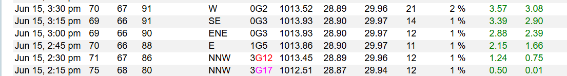 The radar rainfall estimates were supported by a Citizen Weather Observing Program observing site in Fairmont, which reported just over 3” of rain in a 75 minute period from 2:15 to 3:30 pm.