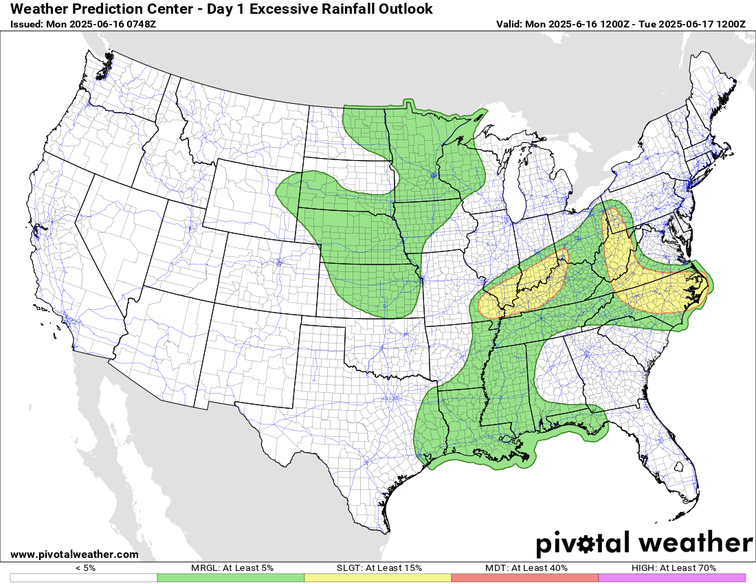 The next couple of days will continue to see a threat of locally heavy rainfall across the central Appalachians and Mid-Atlantic ahead of the remnants of the upper low that caused the flash flooding in Texas last week. If the heaviest rain falls in a particularly vulnerable area like happened over the weekend in Wheeling and Fairmont, significant impacts could again occur.