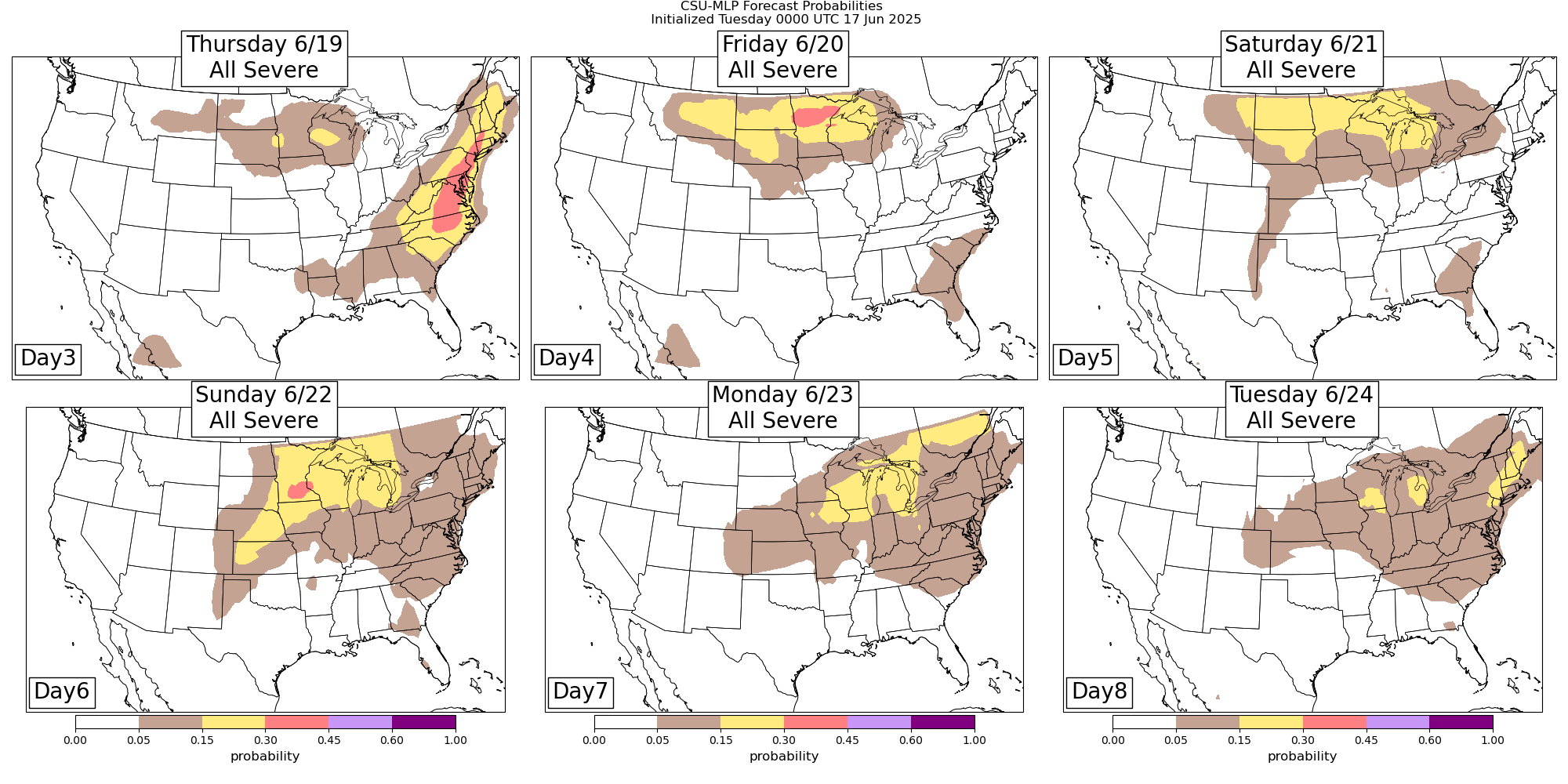 Active severe weather is expected through the end of the week and into early next week. On Thursday, the low pressure system and cold front will push into the Eastern Seaboard region with an enhanced risk for severe storms with damaging winds and possibly a few tornadoes. Going into the weekend, a strong area of upper level high pressure will begin to take shape over the eastern United States in the wake of that frontal system. On the north and northwest side of that system, a series of upper level weather disturbances should bring an active period of severe weather to the northern Plains, upper Midwest and Great Lakes.