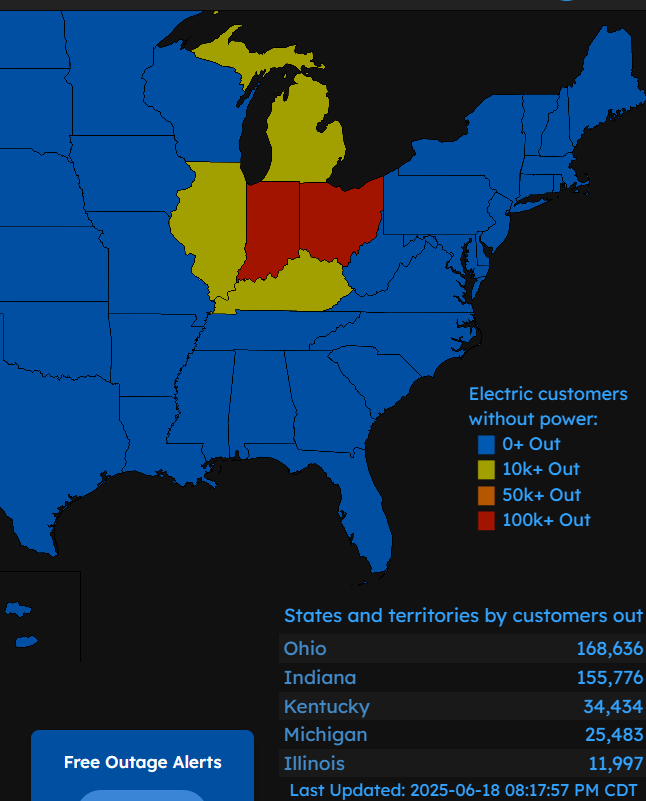 Sorry for all the emails today, but there’s lots of weather going on and want to keep the Balanced Wx community up to date as I can. First, the severe weather has been quite impactful across the Midwest today, with right at 400,000 customers now without power due to the storms, most of them in Indiana and Ohio.