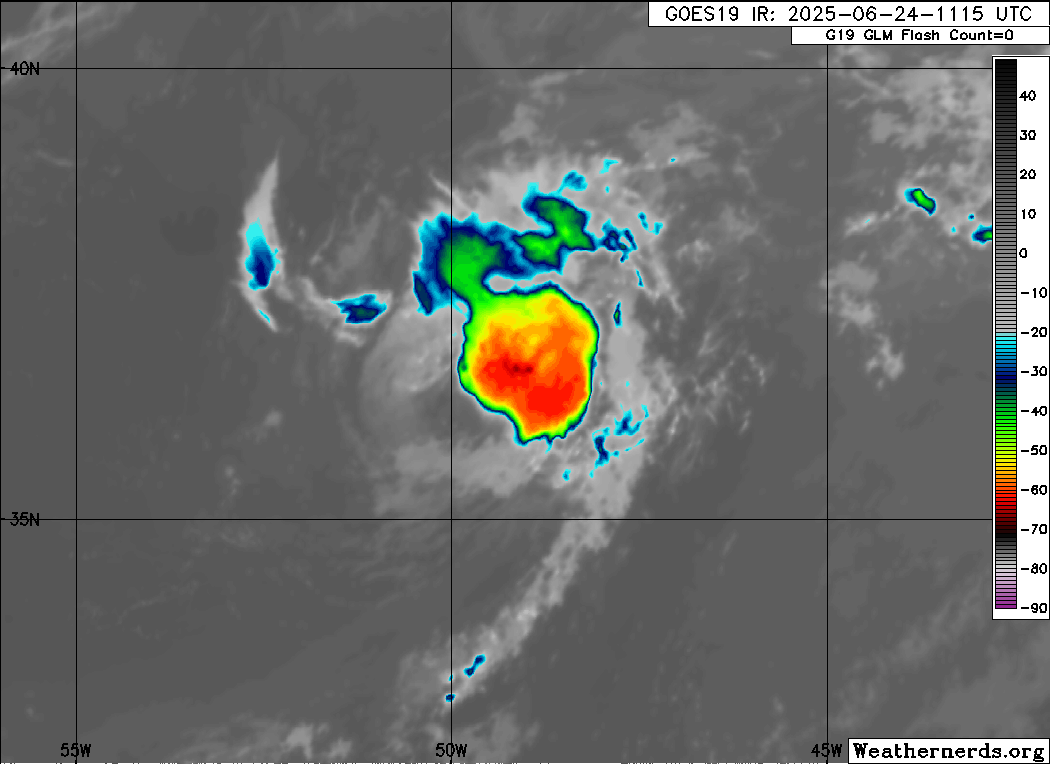 Finally, the National Hurricane Center started advisories recently on newly formed Tropical Storm Andrea, located well east of Bermuda. We talked yesterday about this system and the potential for a weak tropical cyclone to form, and that came to pass overnight. To be honest, my guess looking at the satellite loop above is that it reached tropical storm intensity for a brief period overnight and now has already weakened as all of the thunderstorm activity has been ripped off and dissipated by strong vertical wind shear. It could potentially make a very brief resurgence tonight if thunderstorms were to redevelop near the center – but overall this system will continue to weaken and pose no threat to any land. Andrea will be notable only for being the first named Atlantic system of 2025. No other tropical systems are of concern in the Atlantic basin for the next several days.