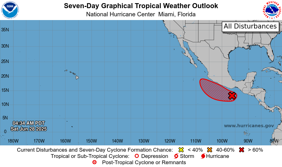 For US weather, 95E is of interest because as the system approaches the southern tip of Baja California late next week, moisture from the system could be fed into and enhance what looks to be an already favorable pattern for monsoonal thunderstorm activity over the southwestern United States. This will be something to keep an eye on as the week progresses.