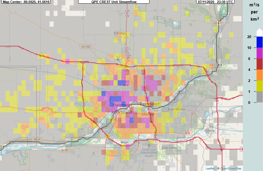 The most impacted area was the Davenport, IA area, and once again intense rainfall rates driven by abnormally high levels of moisture drove the impacts. Much of the Davenport area received 2-3” of rain in just an hour between about 5 and 6 pm.