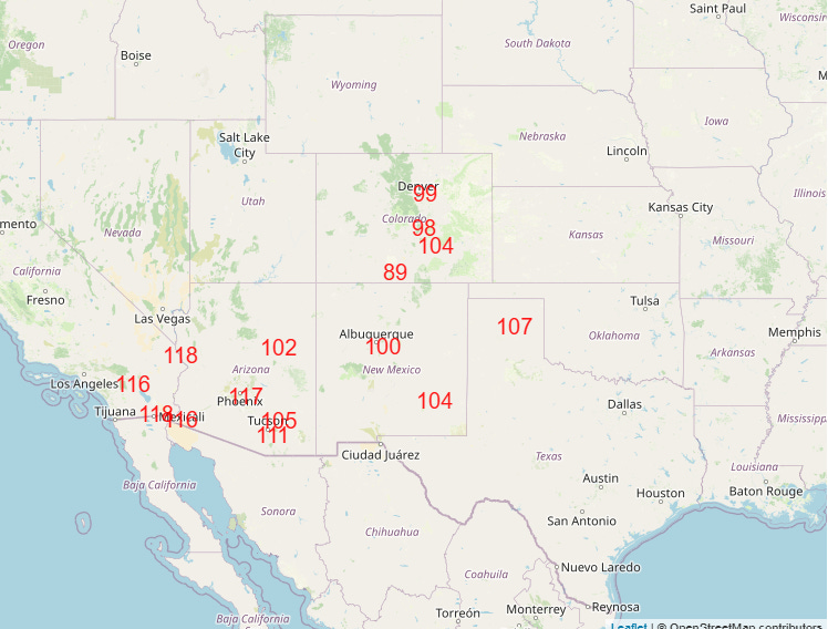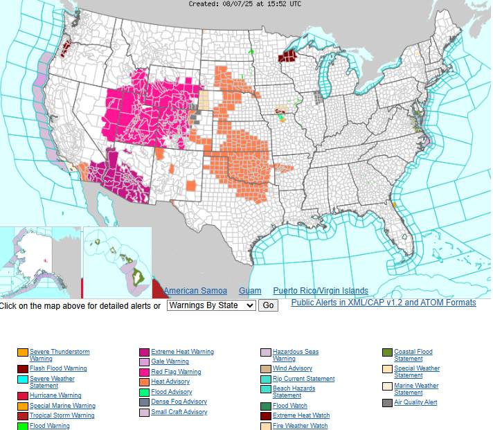 Turning now to the weather, today will see our most recent heat wave peak. Yesterday saw several record highs set in Arizona, with Flagstaff, Tucson, Phoenix and Prescott all setting new records. The heat will intensify and expand today, with record highs possible from southern California through Colorado. A few August monthly records could be set.