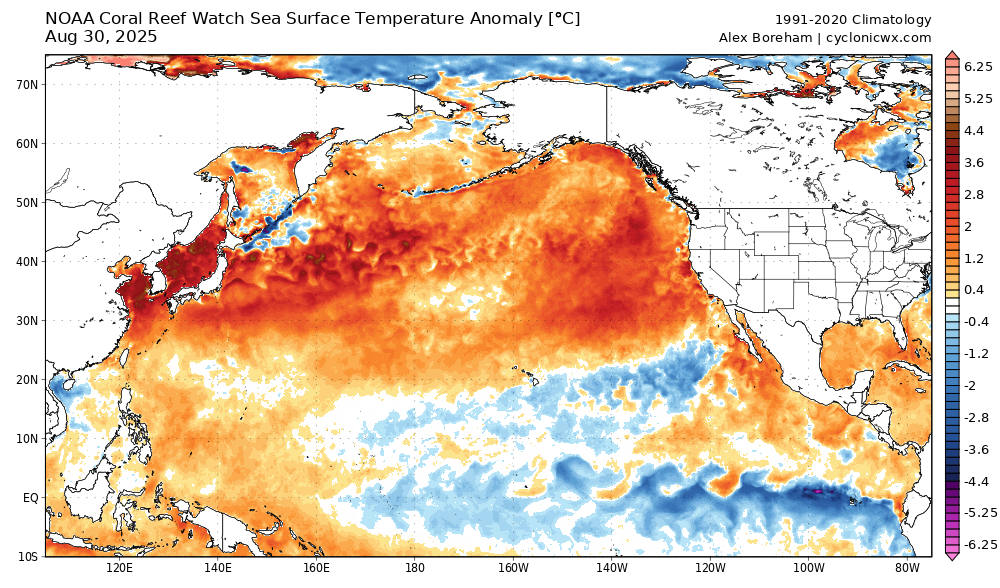 However, in contrast to what we talked about with Hurricane Henriette a few weeks ago and it taking advantage of much warmer than normal sea surface temperatures (SSTs) north of Hawaii, the SSTs south of Hawaii are actually a bit cooler than normal, so even if it moves on a track closer to the islands it will be moving over sub-26C SSTs that would likely promote weakening of any system. Regardless, we will of course watch it.