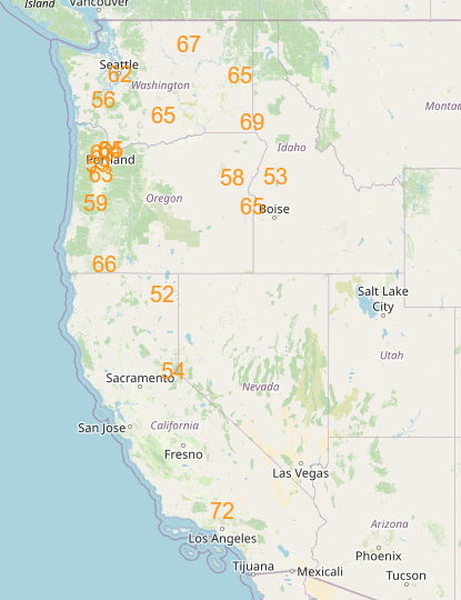 As can be seen in the surface temperature anomaly map a few graphics up, downstream of the West Coast heat, unseasonably cool air will be centered over the upper Midwest and Great Lakes. While currently this airmass does not look as if it will support widespread record low temperatures, on the peak day of the cool weather Thursday, clouds and the cold airmass will likely result in a number of record cool maximum temperatures in this region as shown above.