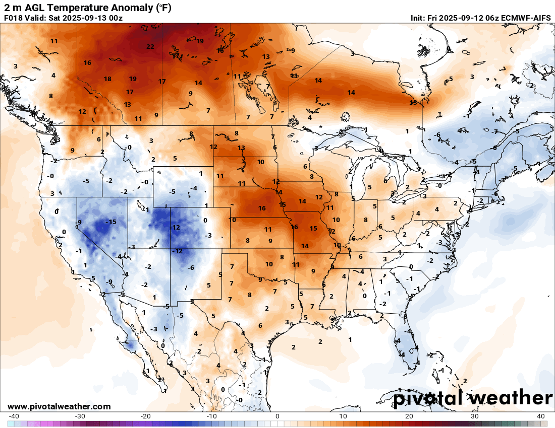 While cool conditions will persist in the western states under an upper level trough of low pressure, much warmer than normal conditions will continue across the central US and much of Canada into this weekend. A few record high temperatures were set on Thursday, and a few more will be possible this weekend.