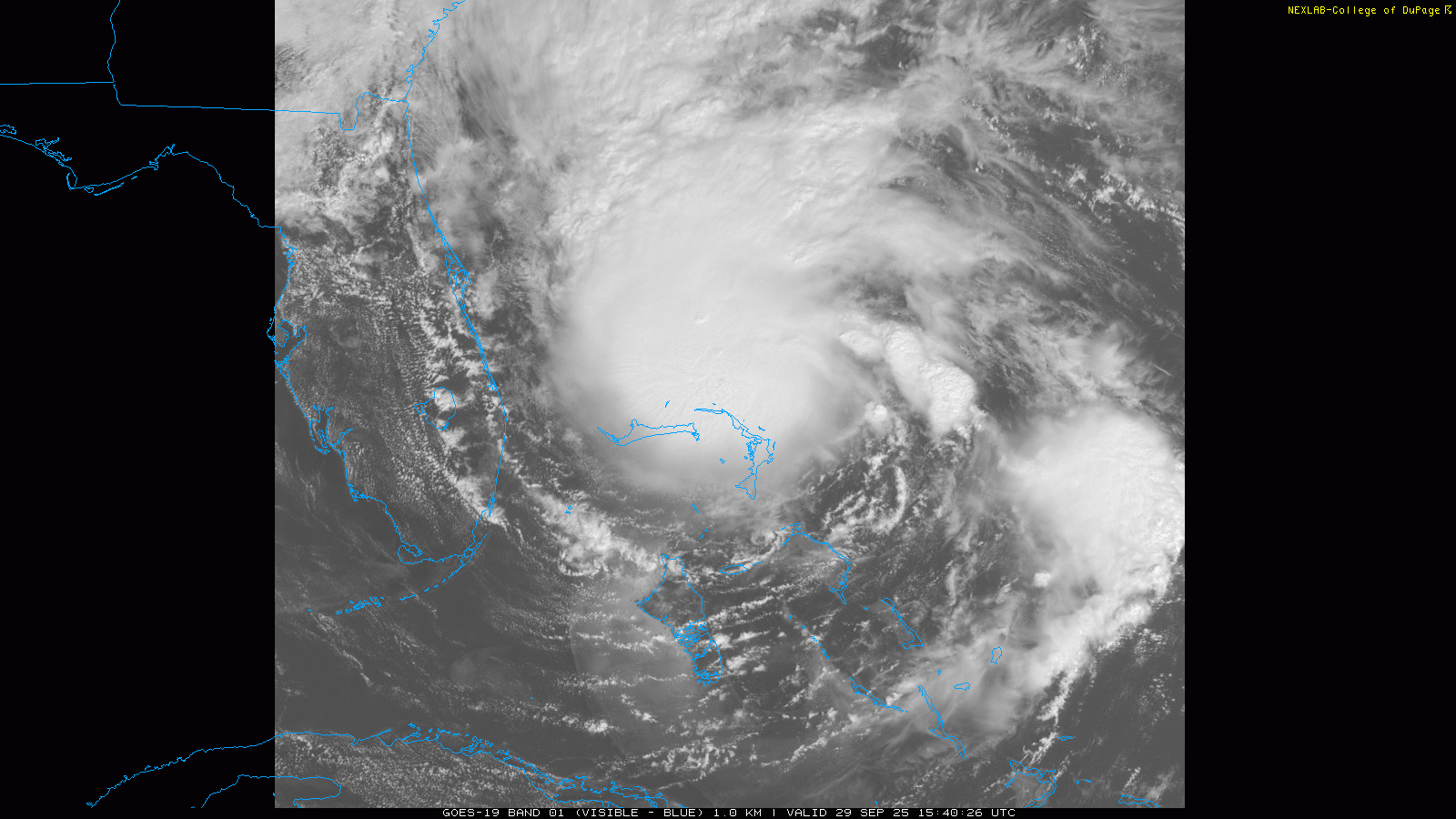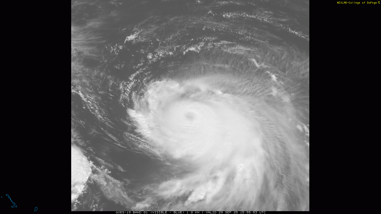 Before Bermuda deals with Imelda, it will first have to get through a glancing blow from major Hurricane Humberto. Visible satellite this morning shows that Humberto is not quite as impressive as yesterday, with the eye not as clear and a bit less impressive thunderstorm activity. However, a USAF reconnaissance aircraft has been in Humberto this morning, and found that it is still an intense category 4 hurricane with maximum sustained winds of 145 mph.