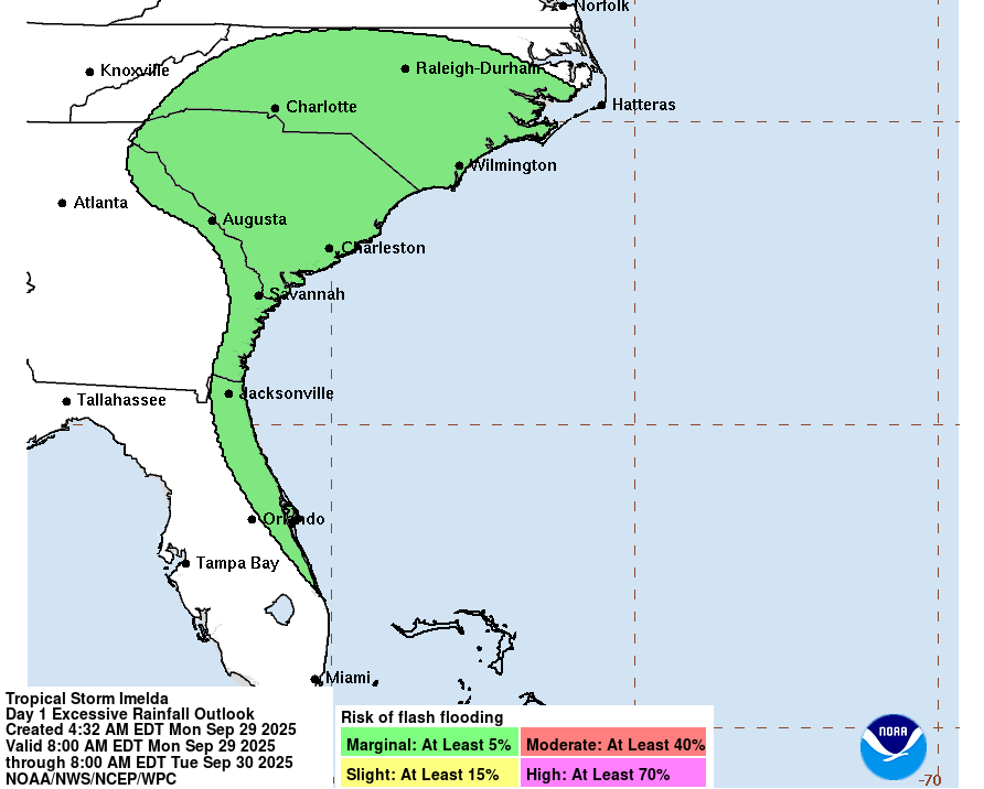 As far as any impacts to the US from either of these systems, the continued shift in the forecast track for Imelda has further decreased the heavy rainfall risk, with just marginal risks for flash flooding now across the Carolinas and coastal Georgia and Florida. Swell and high surf from both tropical systems combined with strong winds between the tropical systems and a strong high pressure system will create dangerous marine and beach conditions along much of the East Coast the next several days.