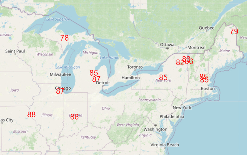 Ahead of the north central US system, near record warmth will continue into the first part of the week (NWS forecast temperatures for Sunday near or above record highs shown above).