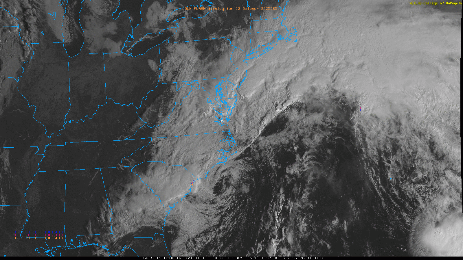 Turning to weather, first light visible satellite imagery shows a well developed, strong area of low pressure centered just off the southeast coast of North Carolina. As expected, this low is clearly non-tropical with very little thunderstorm activity associated with it. The models have continued to hint at a new low developing farther north off the Mid-Atlantic, and this is the area where there has been a bit more of a sign that a somewhat more subtropical system could evolve. As of now, though, there is not any sign of that occurring.