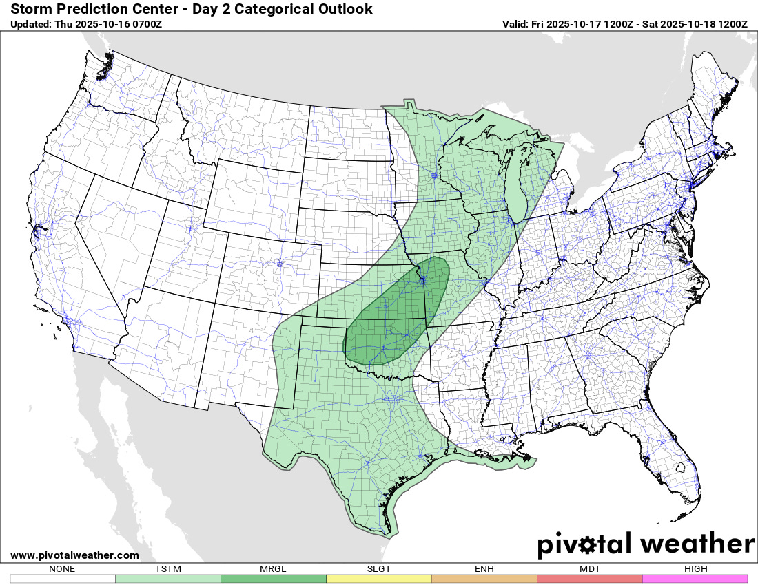 By Friday the marginal risk will shift east into areas from Oklahoma into western Missouri.