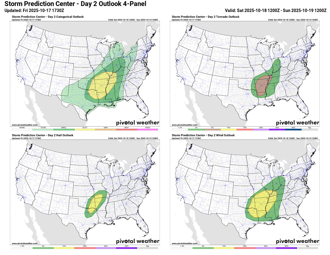 Taking a quick look at the weather, the severe weather expectations for tomorrow still look relatively similar as to what we talked about this morning per the updated Storm Prediction Center outlook. The evening high resolution model runs do suggest the potential for a bit greater tornado risk late Saturday night into early Sunday morning in the southern part of the severe weather risk area, primarily in the Interstate 20 corridor from Shreveport to Jackson. So that is something we will be keeping an eye on with later forecasts.