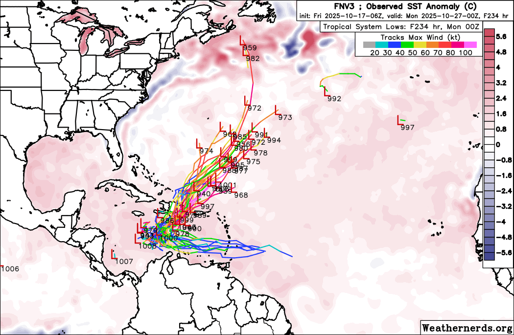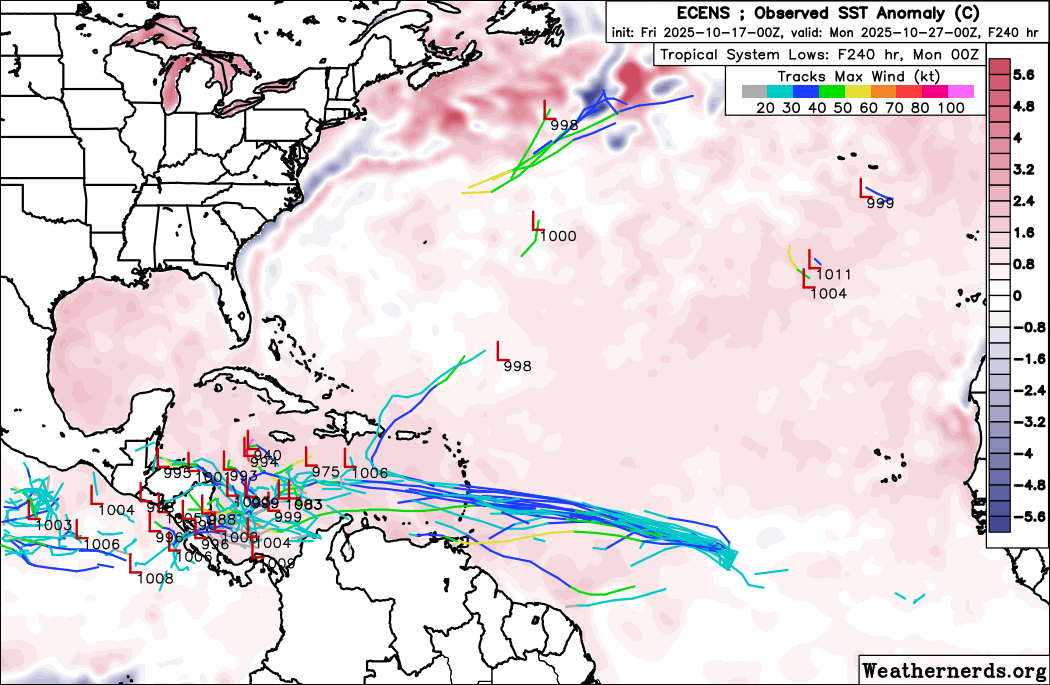 Meanwhile, most of the European ensemble members show a much slower developing system that meanders around the central and western Caribbean for days. Again, any development is still many days away, so plenty of time to watch model and observational trends.
