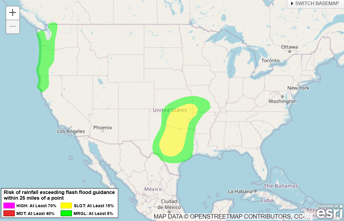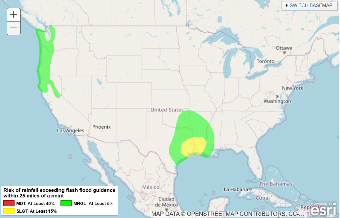 The first in a series of upper level weather systems moving across the southern United States that will help to eventually change the steering flow to allow Melissa to move north-northeast will bring a risk of thunderstorms with heavy rainfall and flash flooding on Friday (top map above) and Saturday (bottom map above). A few severe thunderstorms are also possible in these regions as well.