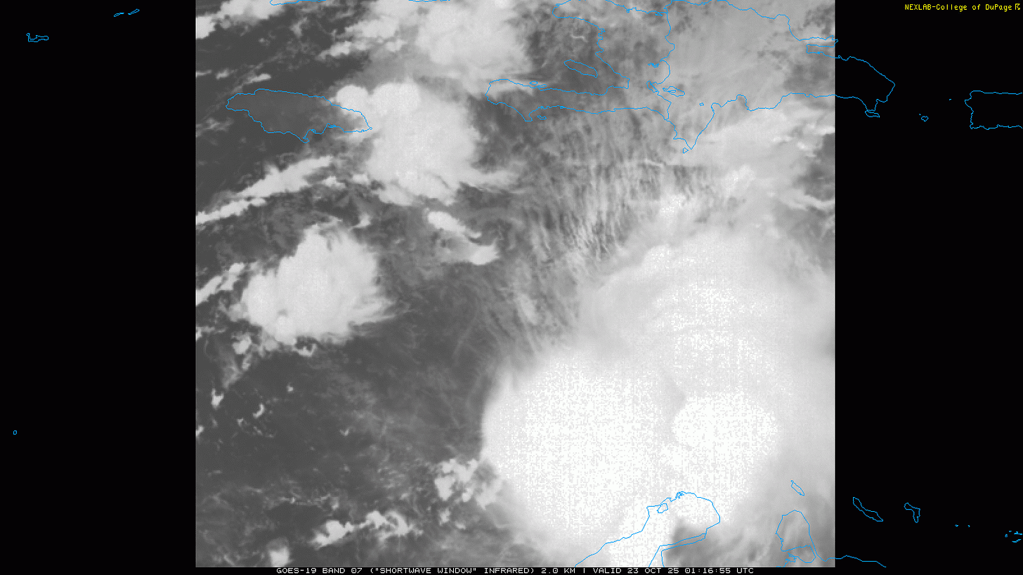 Good evening, I may be busy in the morning and unable to post, so I wanted to provide a quick update on Tropical Storm Melissa. All of the data this evening indicates that Melissa is not really any better organized than this morning. The thunderstorm activity is still all to the east and southeast of the center, which reconnaissance aircraft shows is due south of the southwest peninsula of Haiti. Reconnaissance data also indicates that the circulation of Melissa is rather broad at the surface and tilted with height, also indications of wind shear impacting the system and keeping it from intensifying. On the most recent NHC advisory, it had maximum sustained winds of 50 mph, same as this morning.