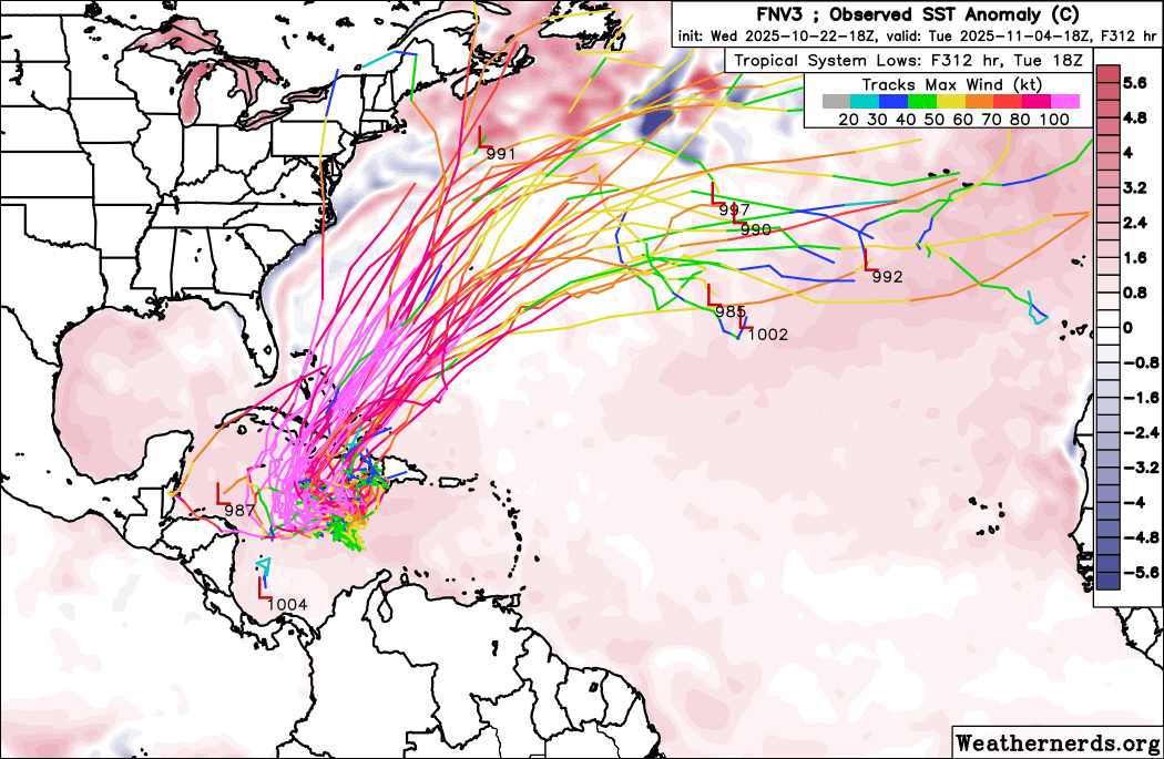 While the general idea of a slow motion to the northwest and west the next several days has come more into focus, there is obviously still a lot of uncertainty on the exact path and speed of the track. It still looks like at some point next week the drift to the west will eventually stop, and the hurricane will lift north or northeast out of the Caribbean and into the North Atlantic. Interests in the Bahamas and Cayman Islands should be monitoring forecasts for Melissa given this expected evolution.