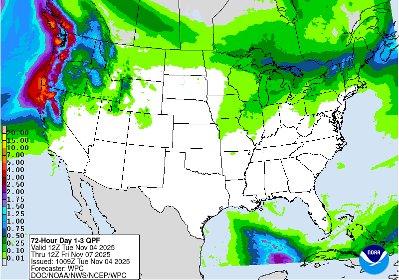 Taking a quick look at US weather, the main focus for precipitation will continue to be in the Northwest the next few days as a series of storm systems brings heavy rainfall and some high elevation snowfall. Much of the country will see above normal temperatures, with some record high temperatures possible particularly in the Southern Plains and Rockies.