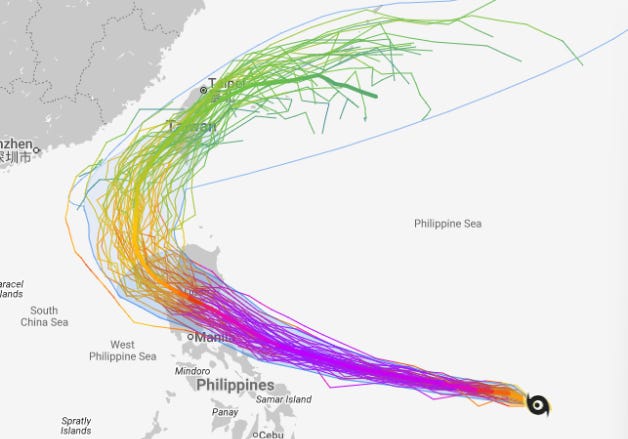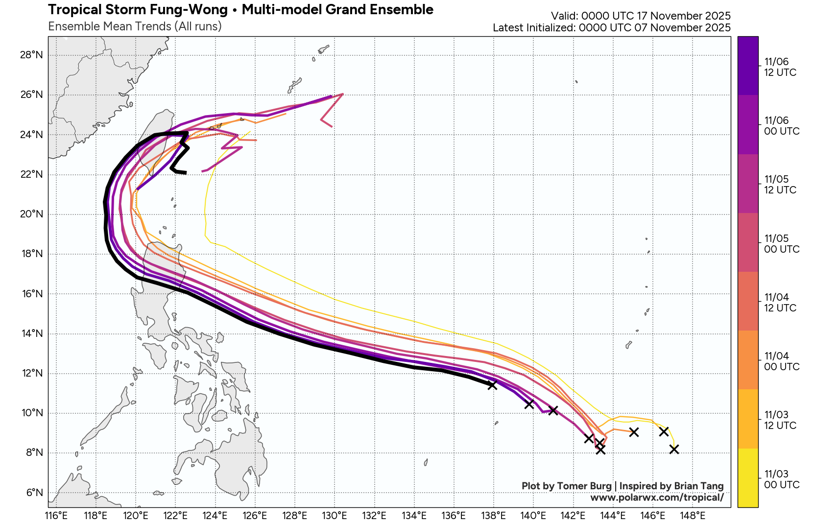This trend is particularly concerning given that the Philippines is already in the midst of a major response to the catastrophic damage left in the central Philippines by Kalmaegi. The death toll from Kalmaegi in the Philippines has now reached 188 with numerous people still missing. Philippine President Ferdinand Marcos Jr. said, “We suffered many deaths, it was very grave. The biggest problem we’re seeing (now) is, we have to think who and how many of the personnel now handling government relief and support in the central Visayas region can be shifted to prepare for Uwan.” Fung-Wong (Uwan) should make landfall on Luzon sometime on Sunday (US time).