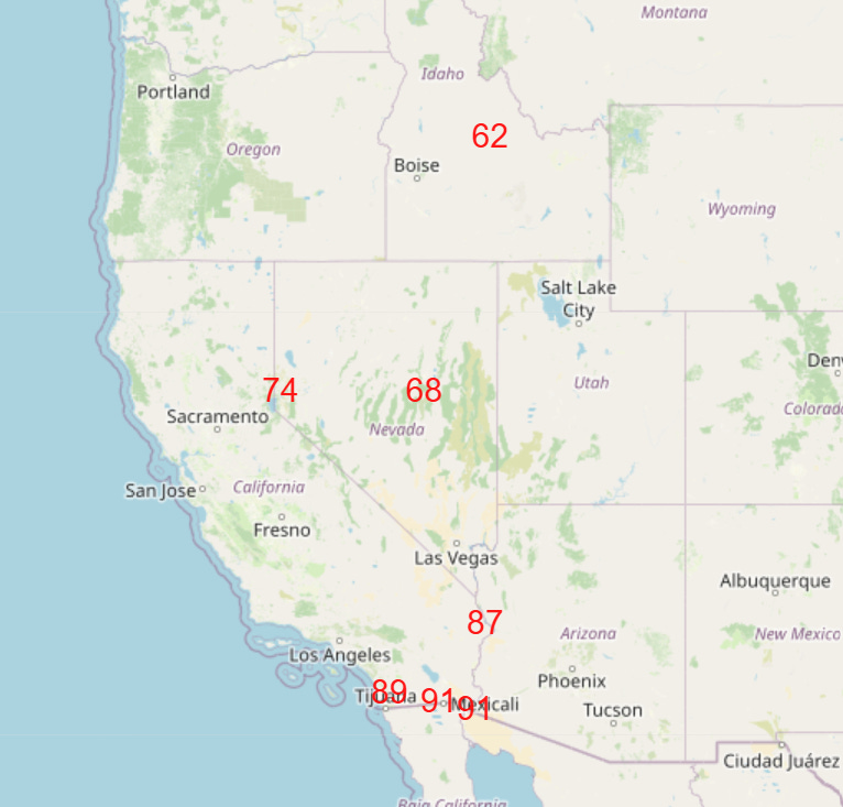 In fact, while the East is dealing with this deep freeze, the West will see unusually warm temperatures the next couple of days, with several record high temperatures possible on Monday as shown above.