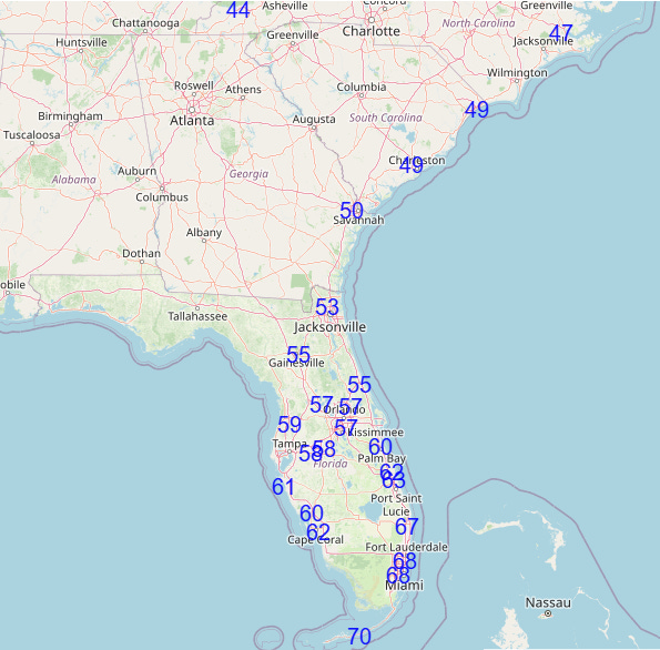 The record cold will continue this afternoon in Florida and along the Southeast coast as numerous record low maximum temperatures are anticipated, with highs in the 50s or colder as far south as the Interstate 4 corridor.