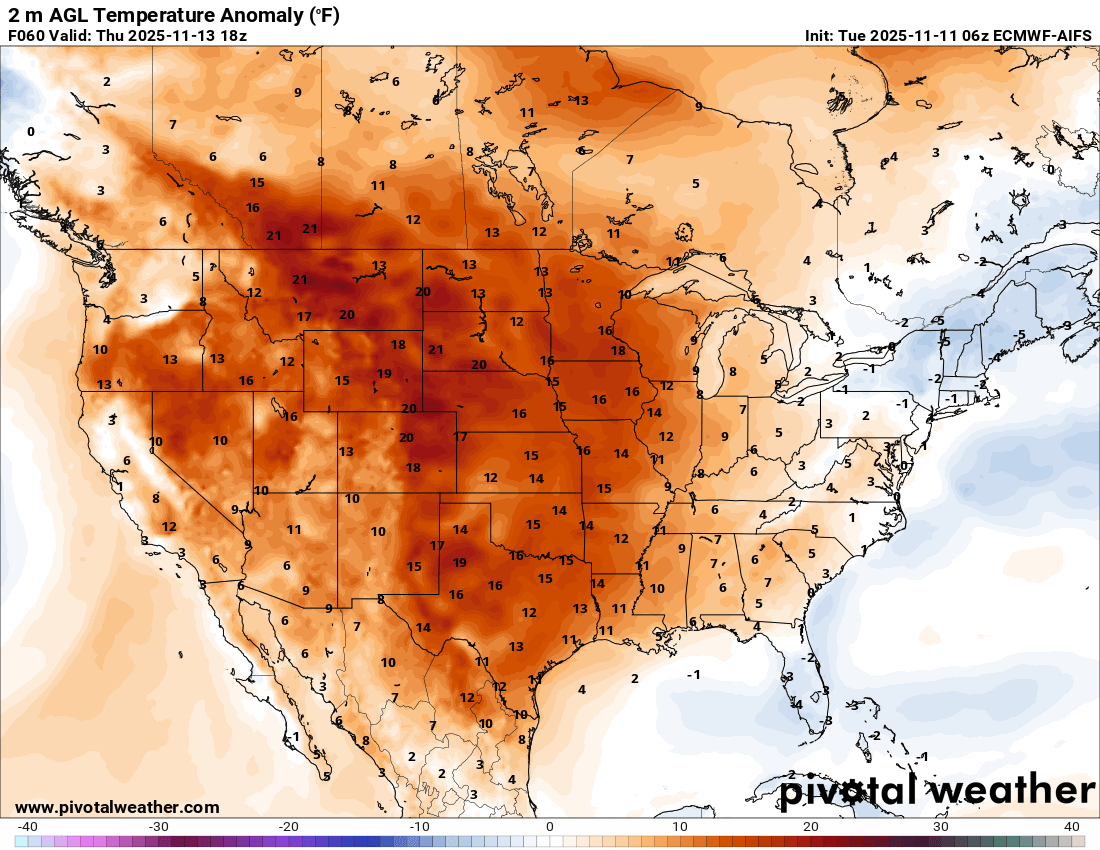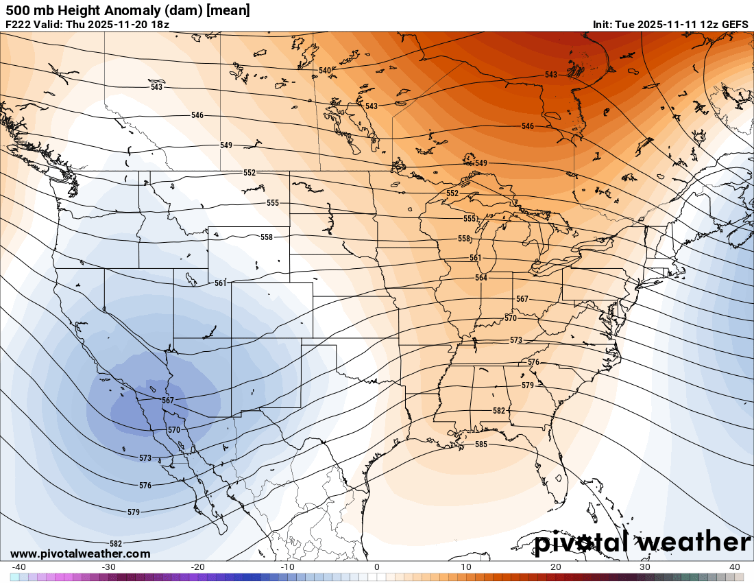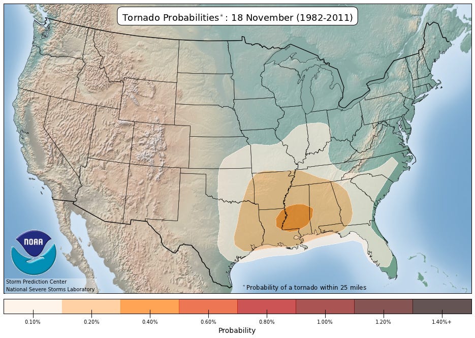 Mid to late November is a relative maximum in tornado activity for this part of the country, so this pattern shift will definitely something we will be keeping a close eye on in the coming days.