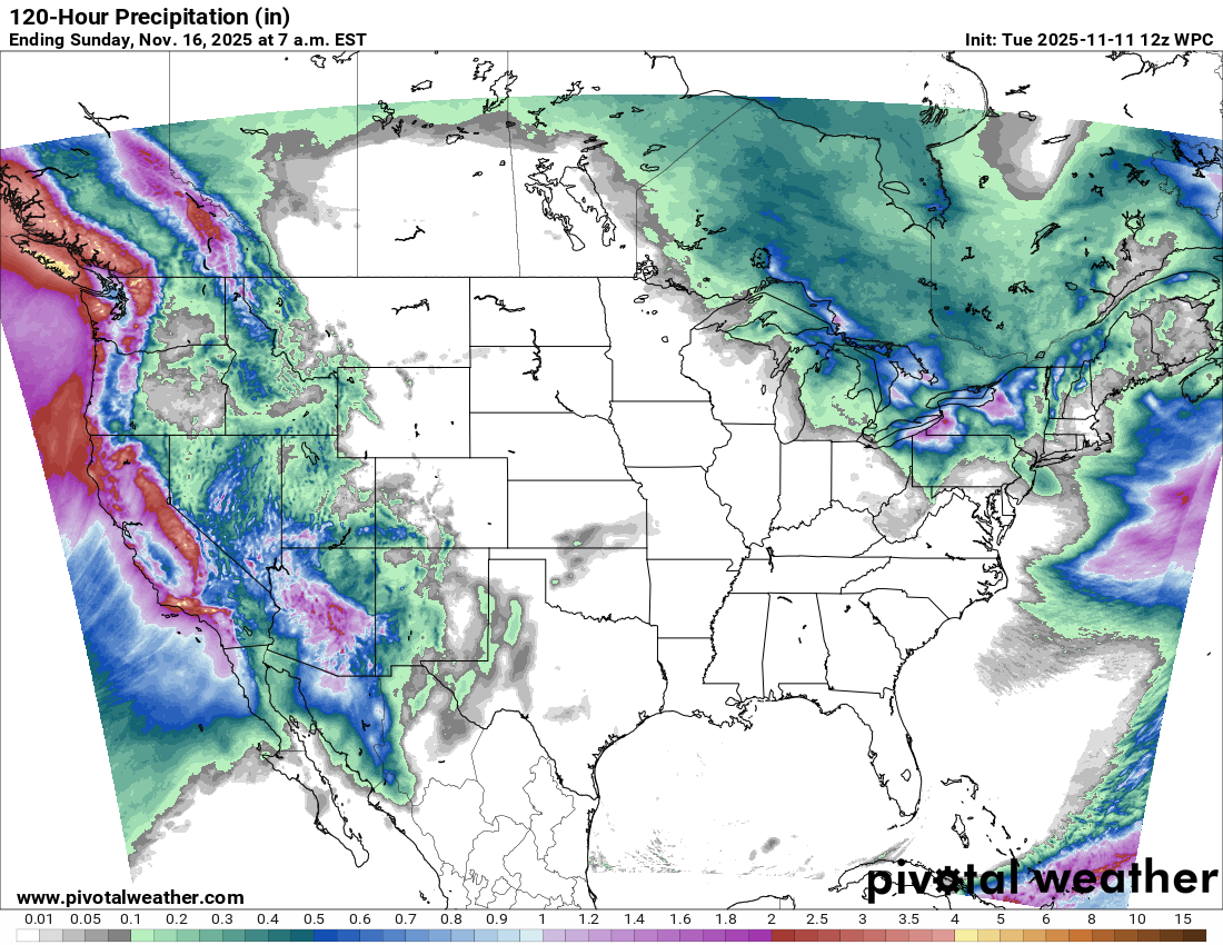 Heavy lake effect snow will continue for a couple of more days in the eastern Great Lakes, while a series of weather disturbances will bring heavy precipitation up and down the West Coast over the next several days. While some low probabilities of flooding issues will accompany these systems across California and the Southwest this week, overall this precipitation should be quite beneficial.