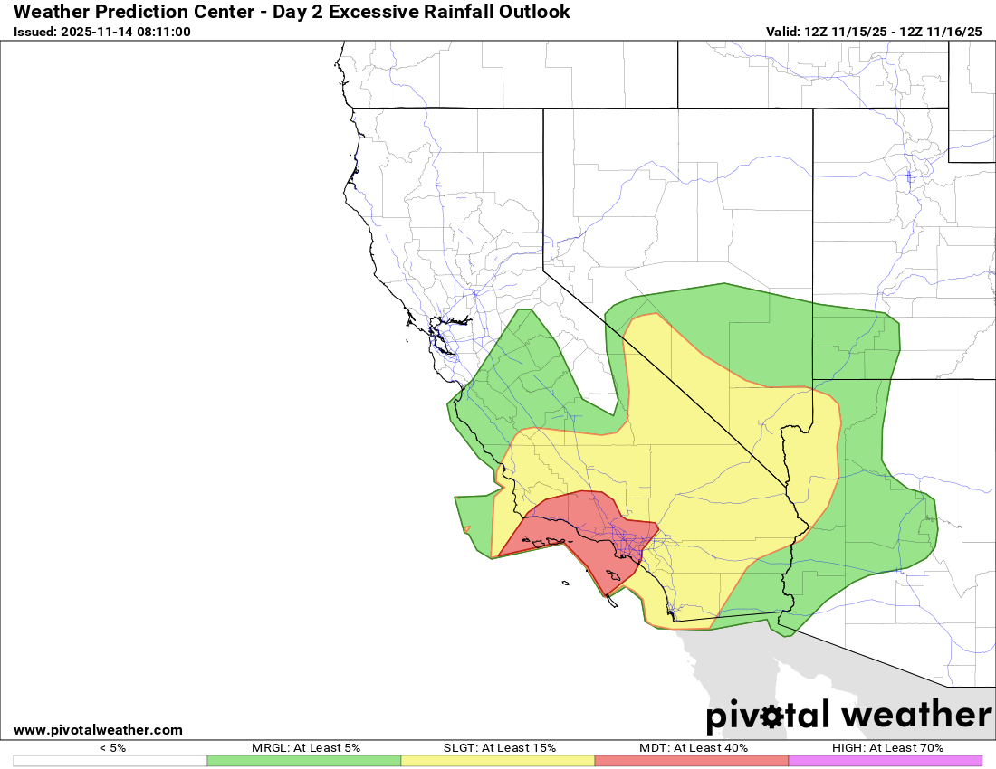 The threat for heavy rainfall and flash flooding in southern California has increased for tonight into Saturday, as a new strong upper level disturbance rotating around the upper low will push northeast into the region. The Weather Prediction Center now has a moderate (level 3 of 4) risk of excessive rainfall and flash flooding tonight into Saturday from the mountains north of Los Angeles into much of the metro area.