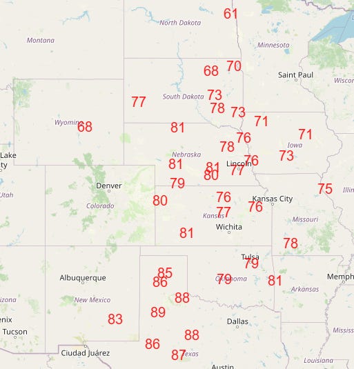 The other big weather story today is the widespread record warmth anticipated across the center of the country. After a number of record warm temperatures in the Rockies the last 24 hours, record high temperatures are expected this afternoon from the Canadian border to the Rio Grande (above). Unseasonable warmth will continue across the central and southeast parts of the country into early next week, but the record warmth will become more focused across the south central US.