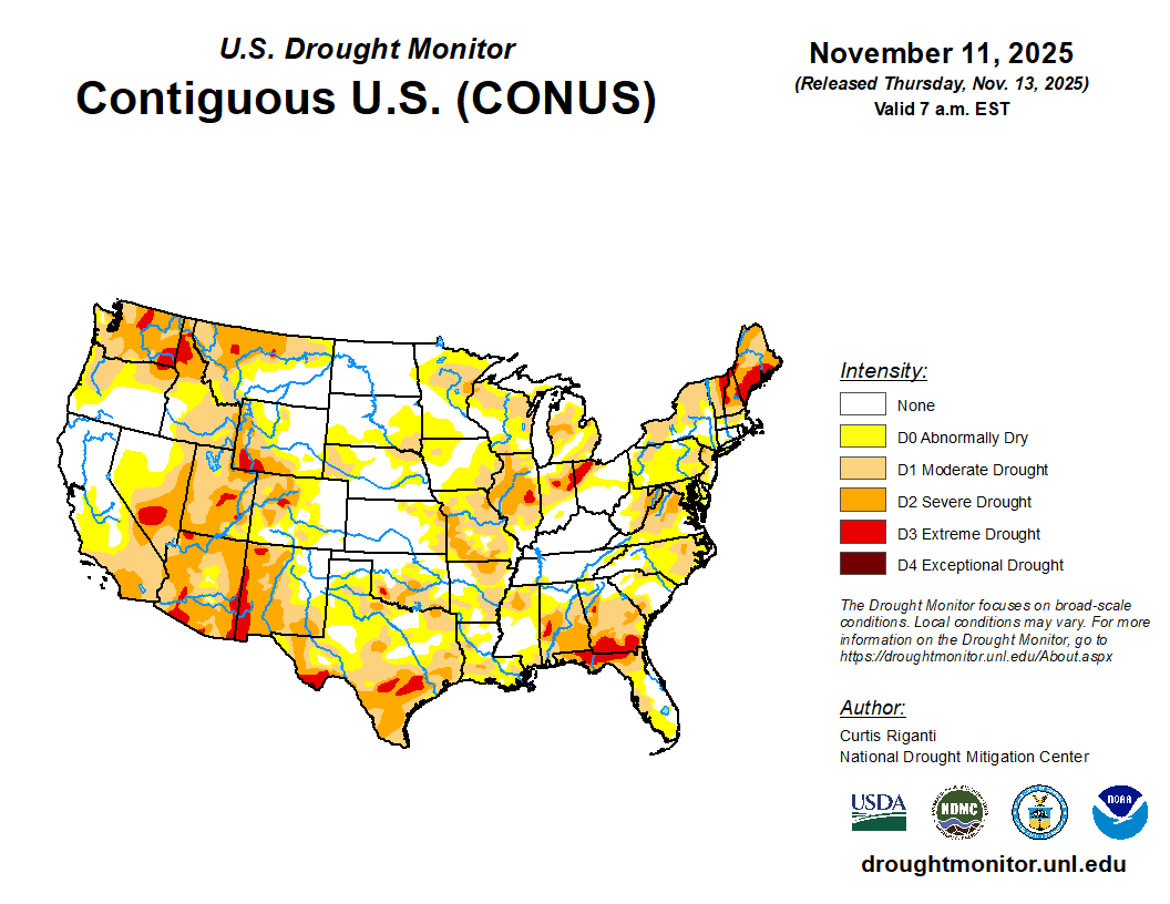 Along with the unseasonable warmth, drought has also become an increasing issue in recent weeks for large parts of the country.