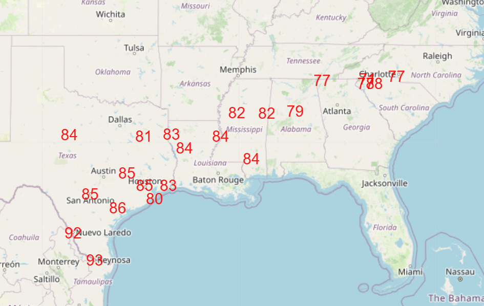 The record warmth is not going anywhere anytime soon. Today, record highs will be more confined to Texas, but there will still be a number of locations reaching the upper 80s and lower 90s (forecast records shown above).