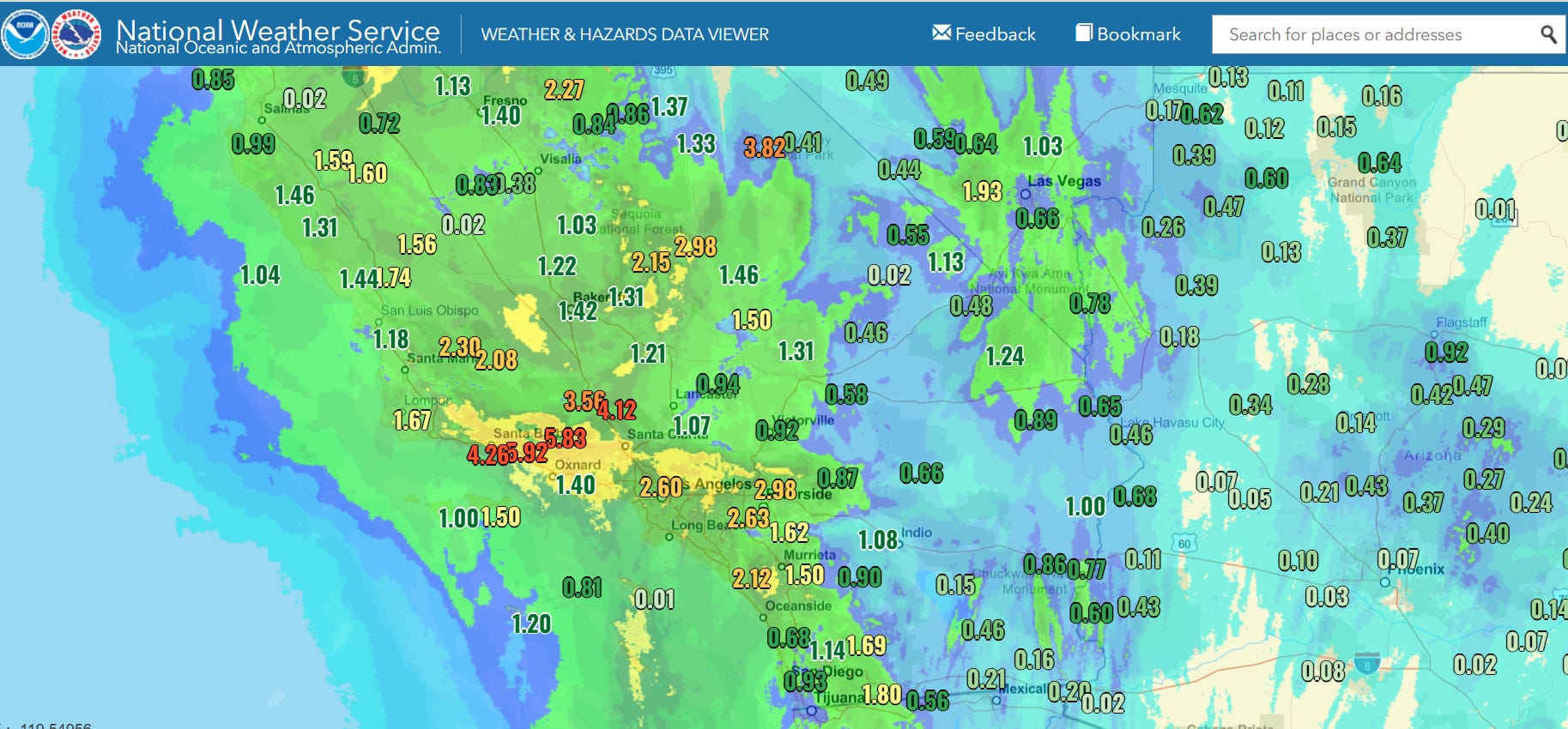 Starting off this morning with a quick recap of the heavy rain and flooding in southern California. Saturday was the peak of this first period of significant rainfall (48 hour observed and radar estimated totals above) for the region, with heavy rains causing flooding and mudslides as summarized in this Los Angeles Times article. Luckily, though, Saturday’s rainfall appears to have verified on the lower end of model projections, so while there were certainly issues, the observed amounts combined with mitigation efforts taken in advance of the event appear to have prevented much in the way of serious impacts. The rainfall of course is also very beneficial as far as reducing fire danger — last year southern California saw an extremely dry start to rainy season which helped fuel the devastating January wildfires.