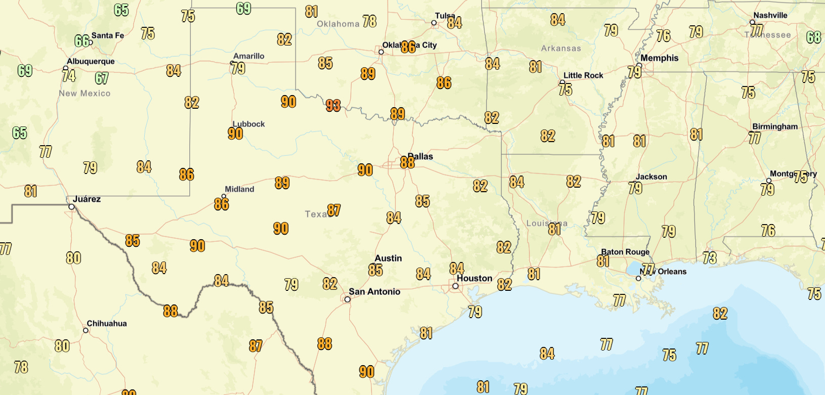 The record warmth is not going anywhere anytime soon. Today, record highs will be more confined to Texas, but there will still be a number of locations reaching the upper 80s and lower 90s (forecast records shown above).