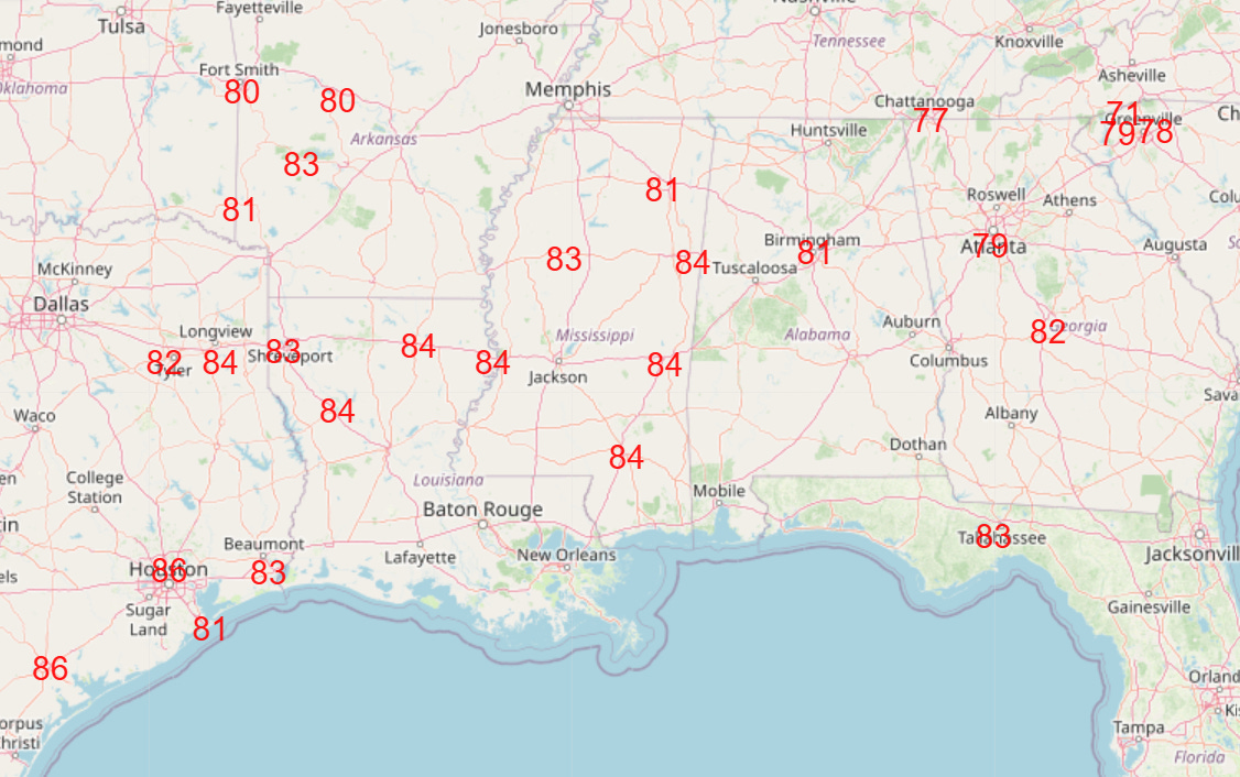 Several record high temperatures were set in Texas on Sunday, including Brownsville (91F), Houston Hobby (86F) and Austin (87F). Additional record warm temperatures are anticipated in Texas and Oklahoma today, and this record warmth will expand to much of the Southeast over the next few days, with numerous record highs expected Wednesday (top graphic) and Thursday (bottom graphic).